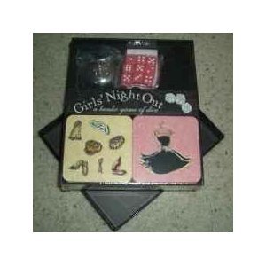 Product Description : Girls Night Out Game Content, Instruction Sheet, Game Bell, Traveling , Score sheet Necklace, Velvetine traveling Trophy Pouch, Nine six sided Die player score pads, Bonus gift 12 Coaster