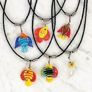 Product Description : These tropical fish necklaces are fun party favors for a pool party, beach party or luau. Bright, colorful fish are made from glass and measure 1" on a 23" cotton cord. Put them in goodie bags or wear them as luau jewelry.