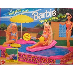 2013-04-02 09:34:54.677231-04 Category: Toys & Games Vendor: Glitter Beach Barbie Spray & Play Pool is a 1992 Arcotoys, Mattel production. Includes: Vinyl Pool approx. 12" x 18" with Spray